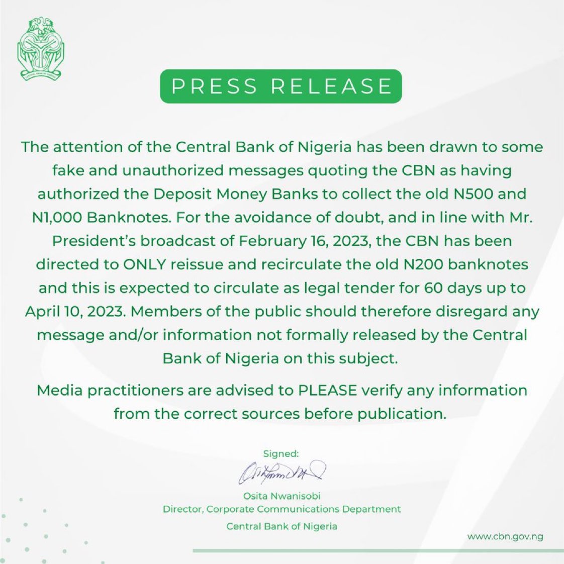 #CBN denies authorizing commercial bank to still be