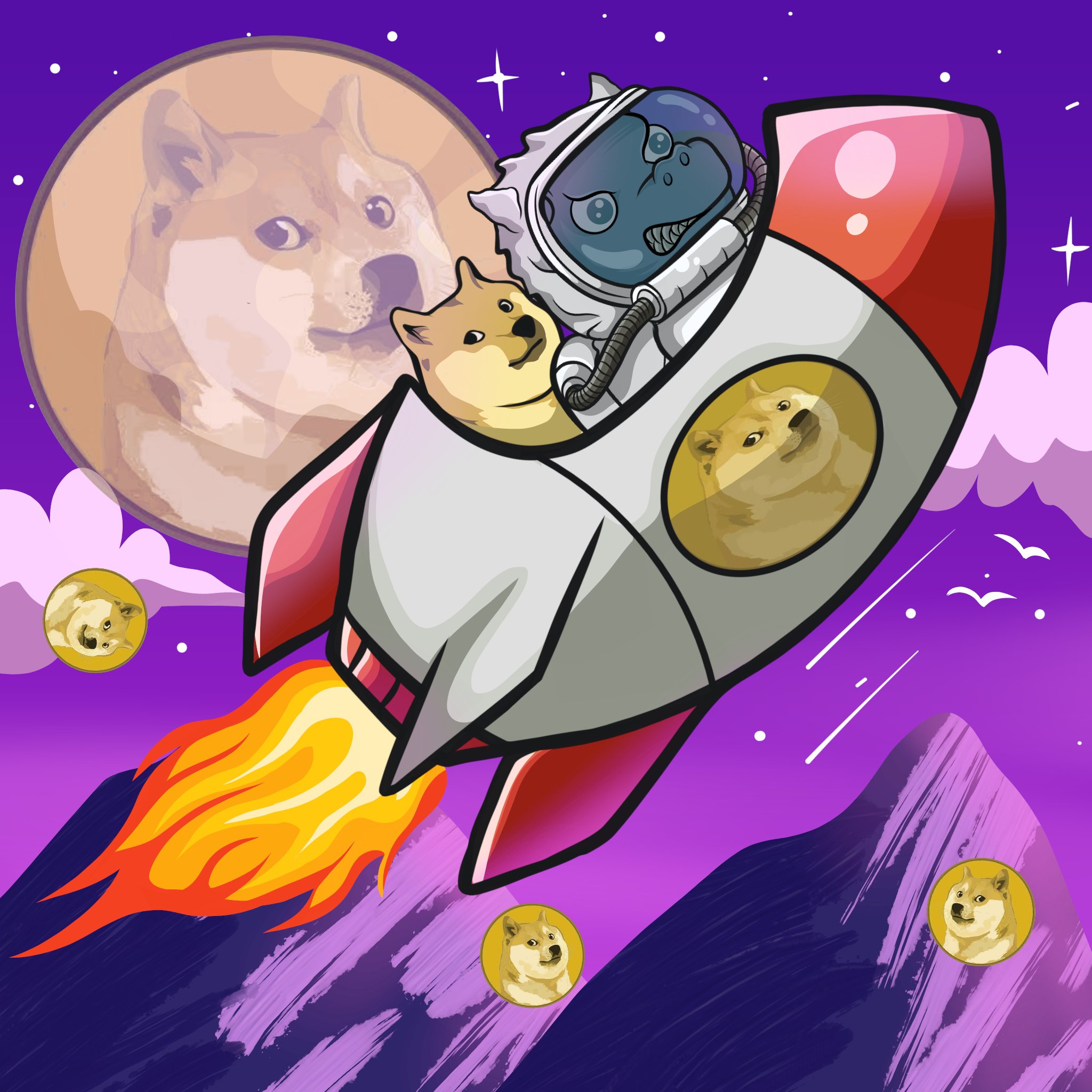 GM fams ☕ Just made Dino with a doge to the moon