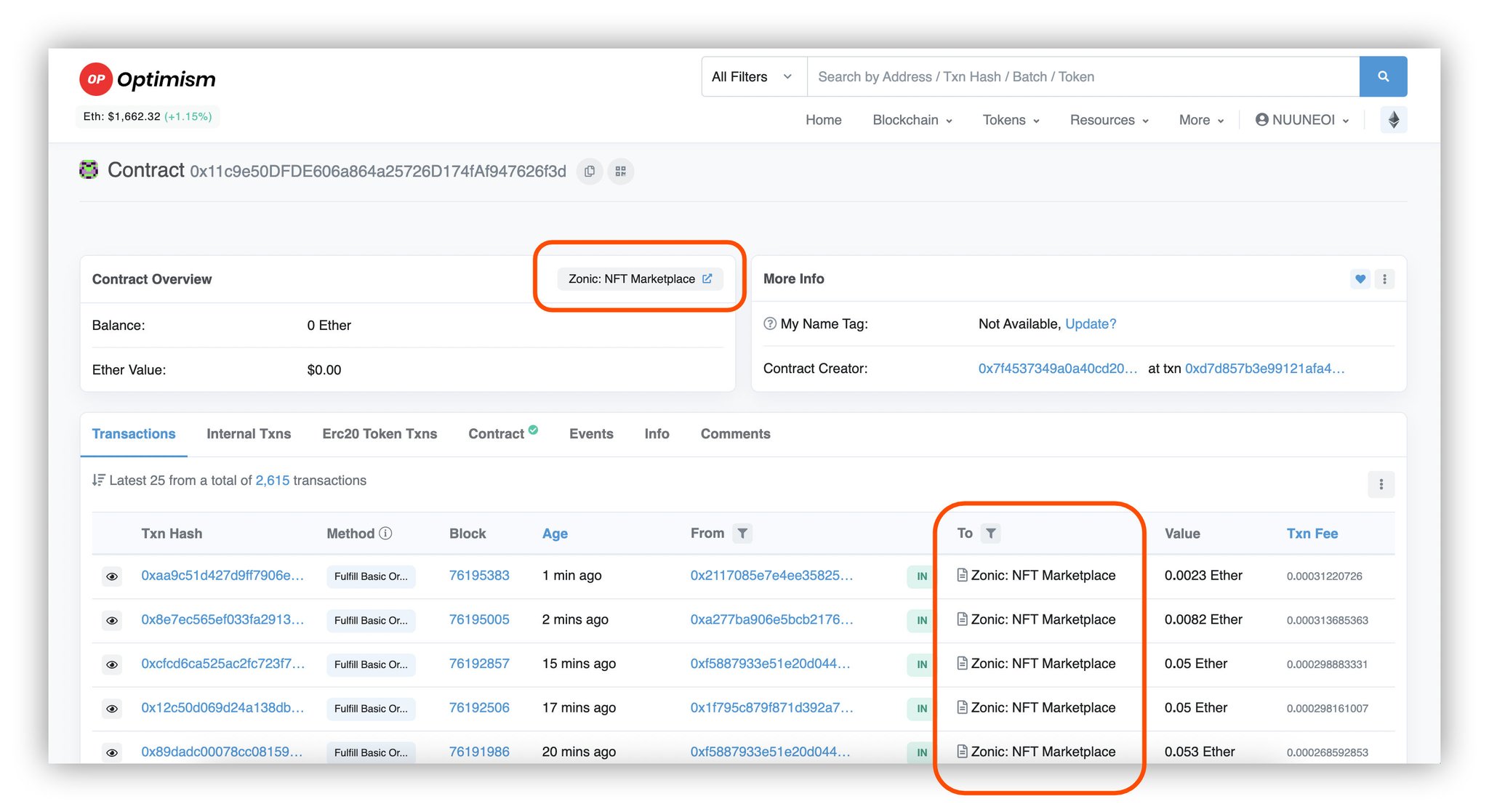 Our smart contract, named 'Zonic : NFT Marketplace