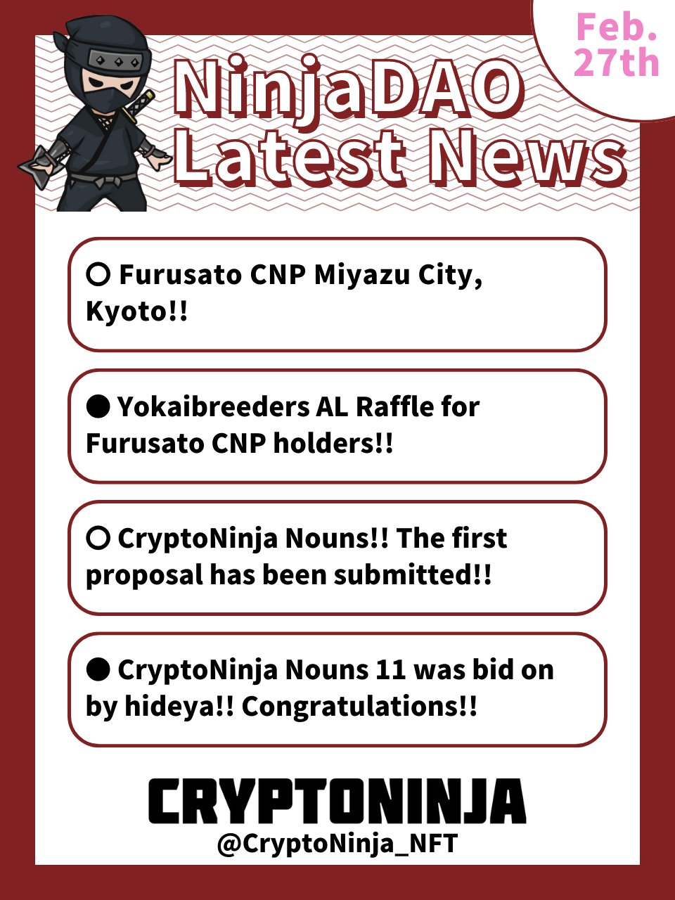 1/ #YesterdaysNinjaDAO NinjaDAO Latest News has Arrived