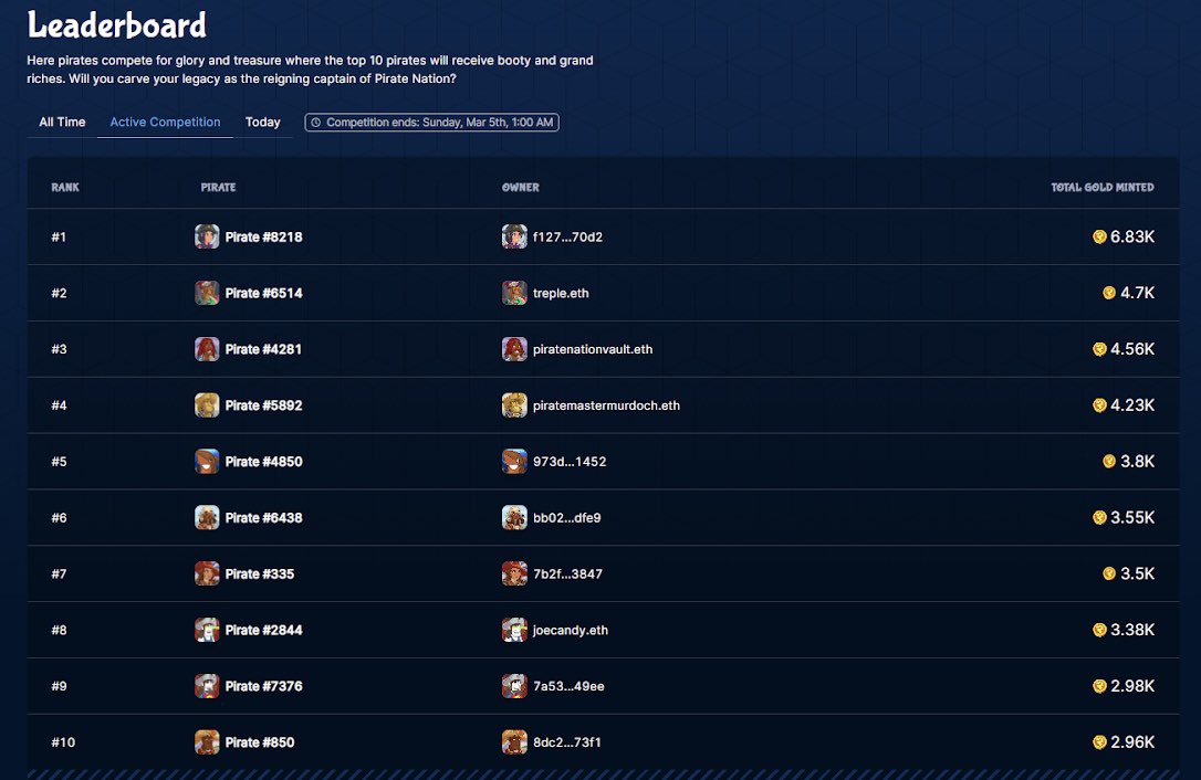 Leaderboard Top 10 We are just over a week into the