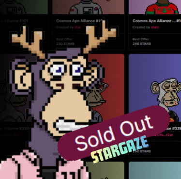 The @cosmosape_nft Stargaze mint sold out in seconds