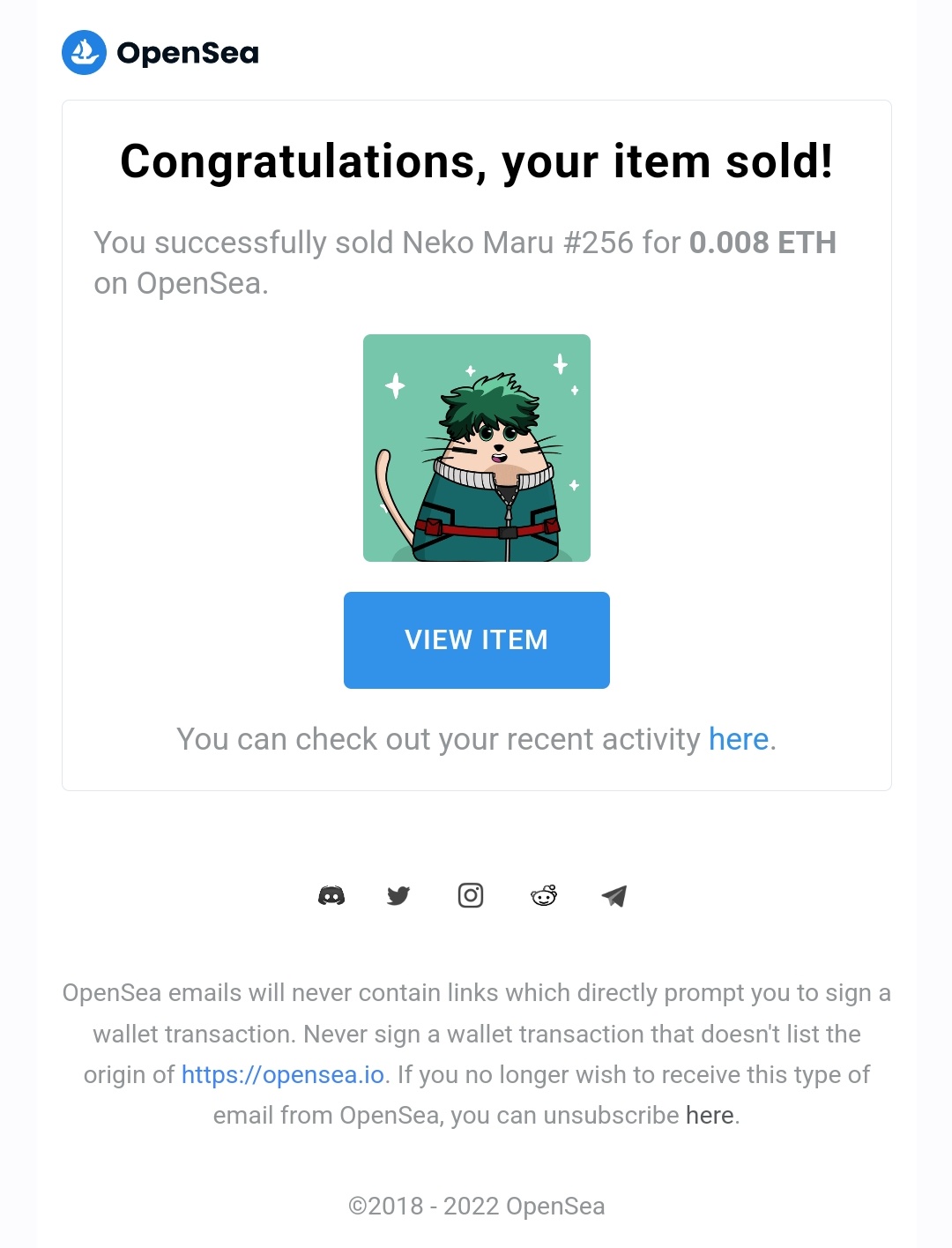 Your item sold 😠Neko Maru #256 has been sold today