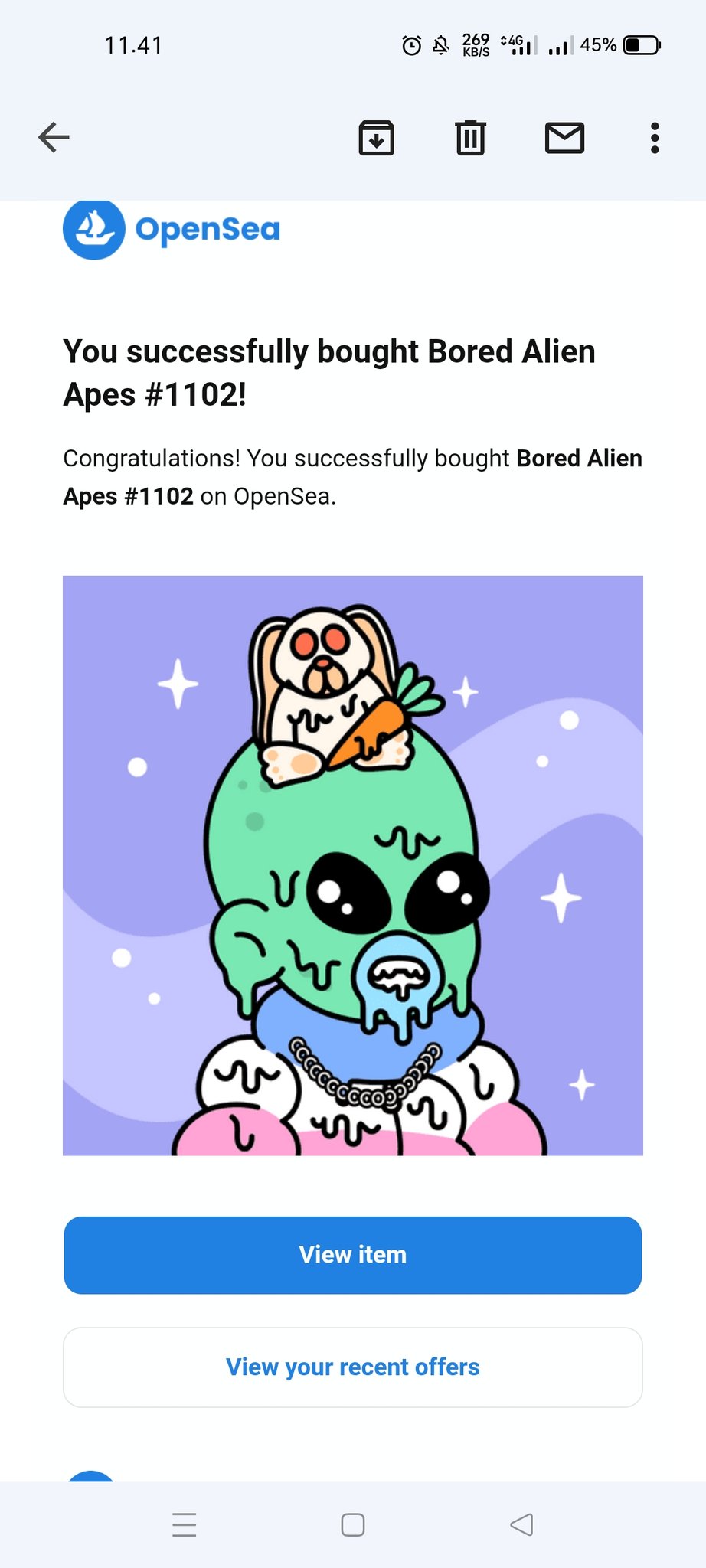 Bought amazing nft from🤯 #BoredAlienApes @StielHugh