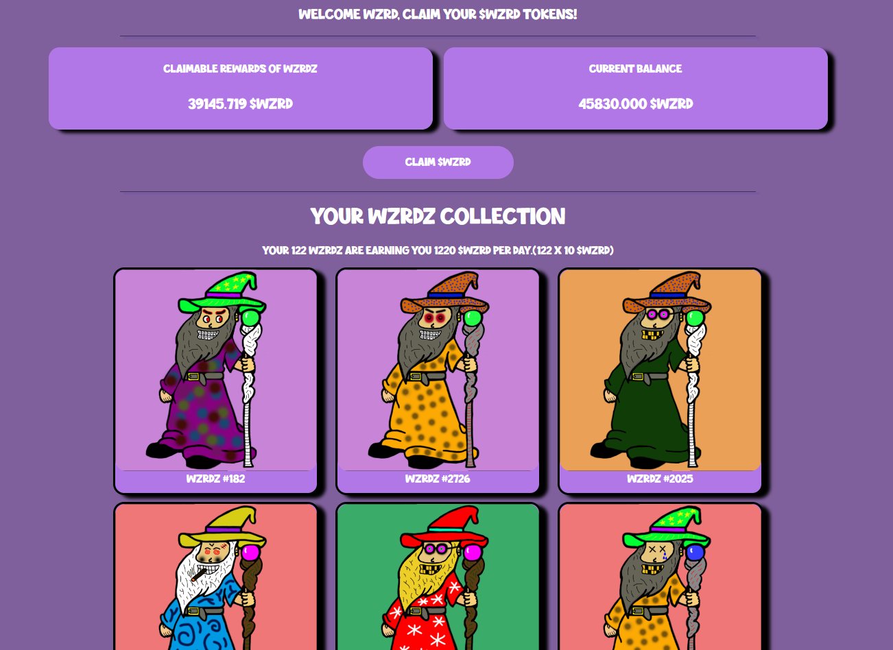 Each Wzrdz of Web3 held earns you 10 $WZRD per day