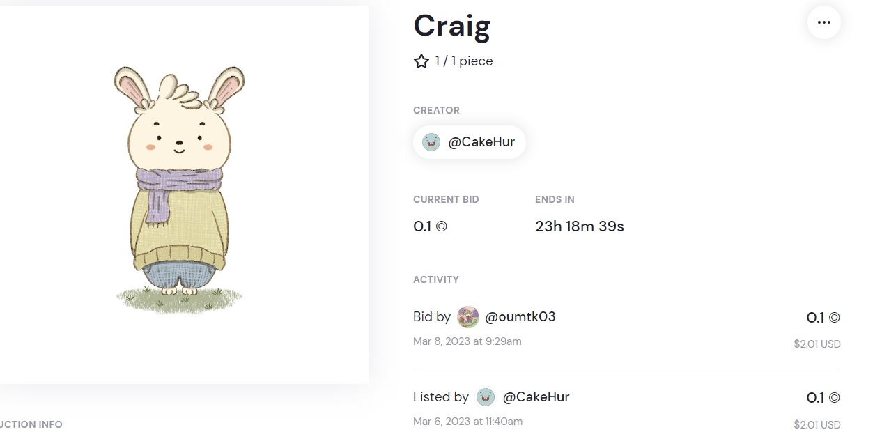 ⛳️ Auction updated “Craig” Current bid : 0.1