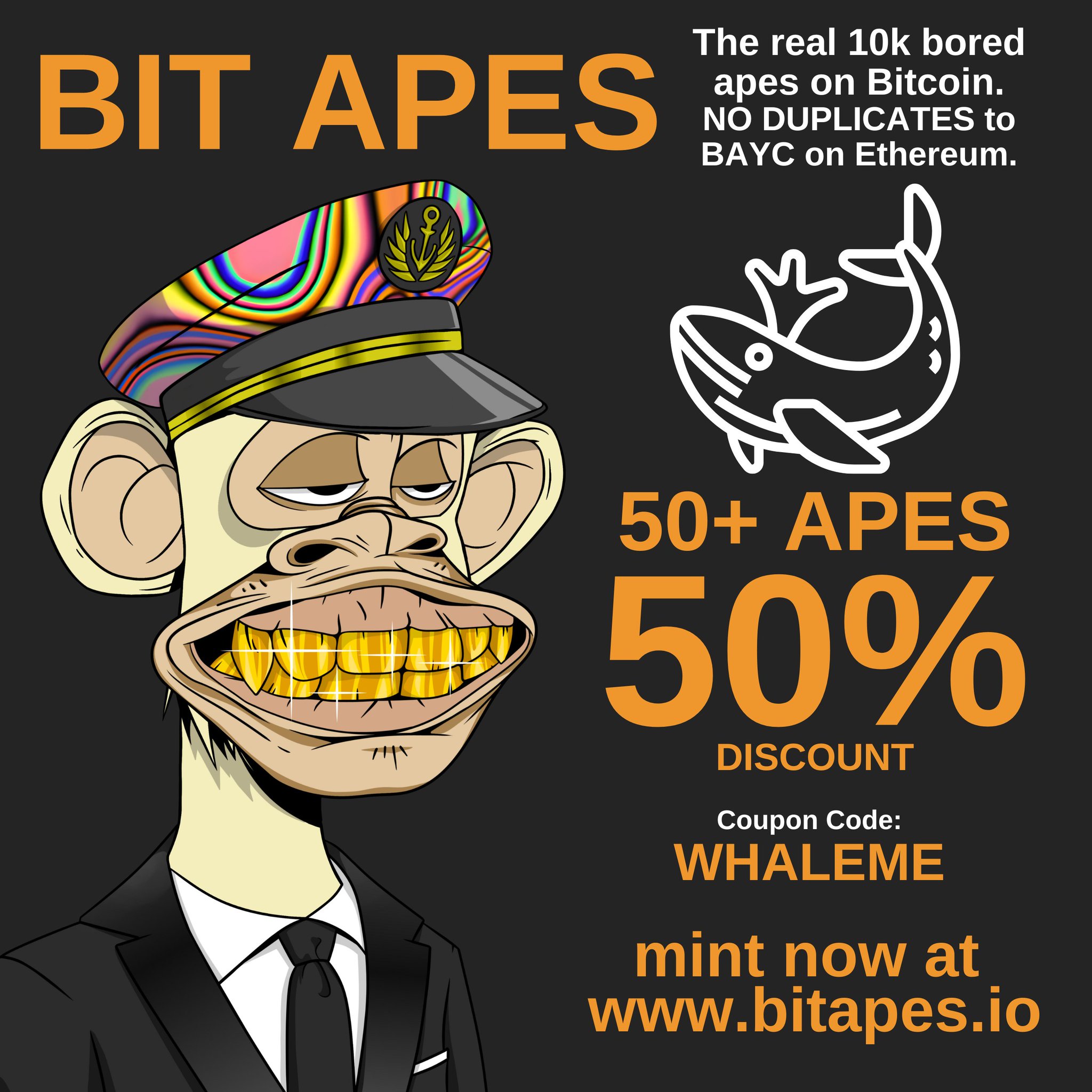 🐳50+ apes at 50% discount🐳 Coupon code:: WHALEME MINT: