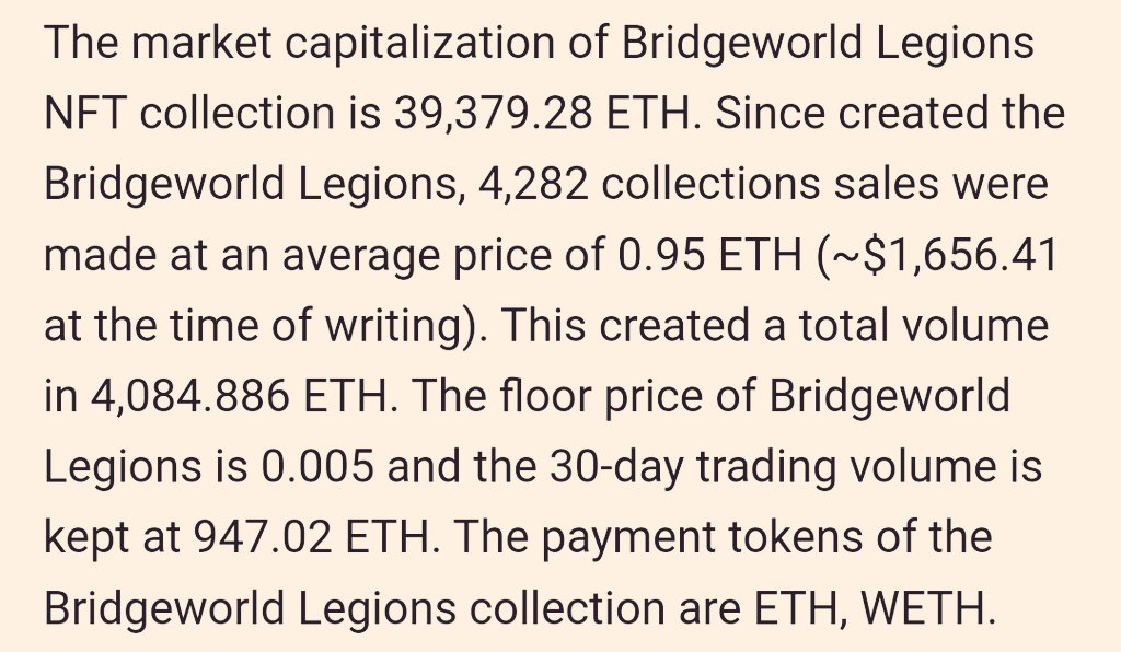 NFT Collection Bridgeworld Legions Price And Sales