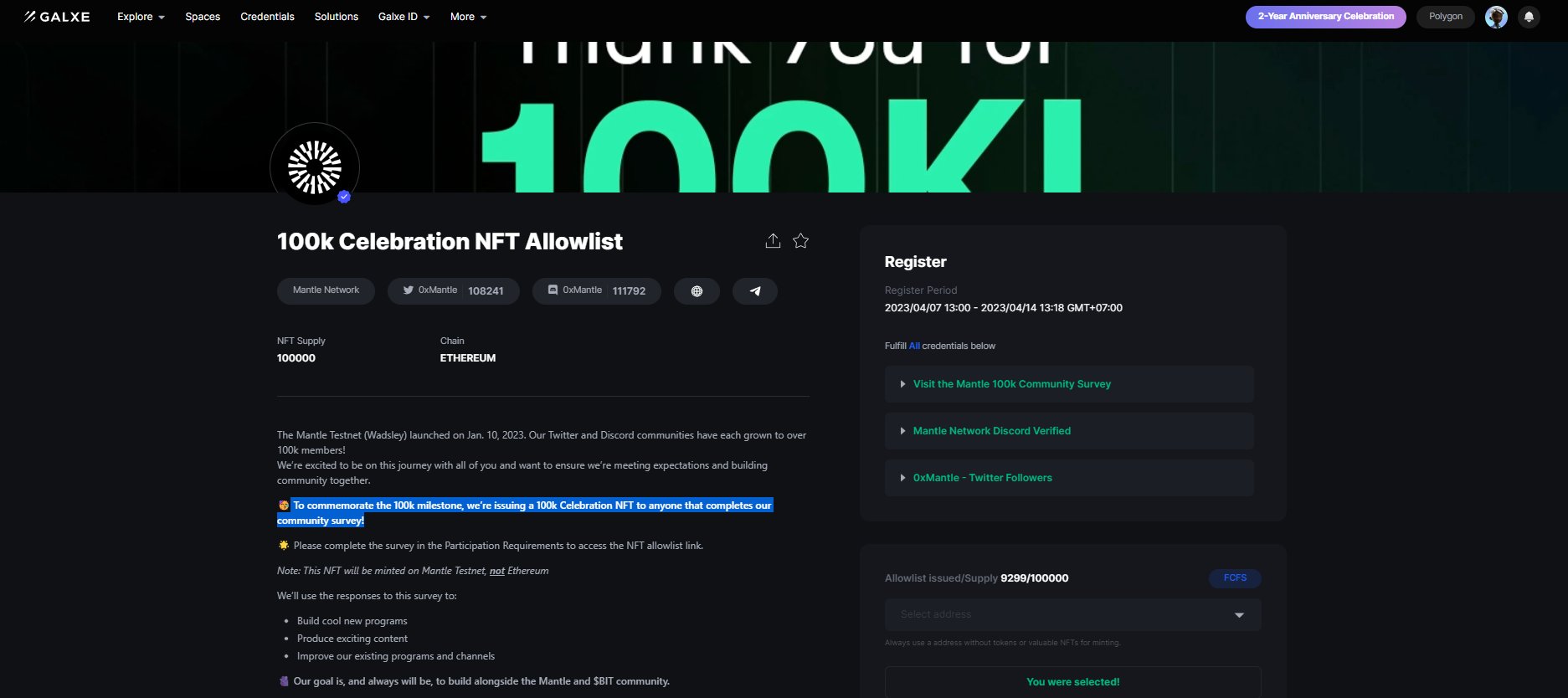 Mantle Network - 100k Celebration NFT Allowlist To