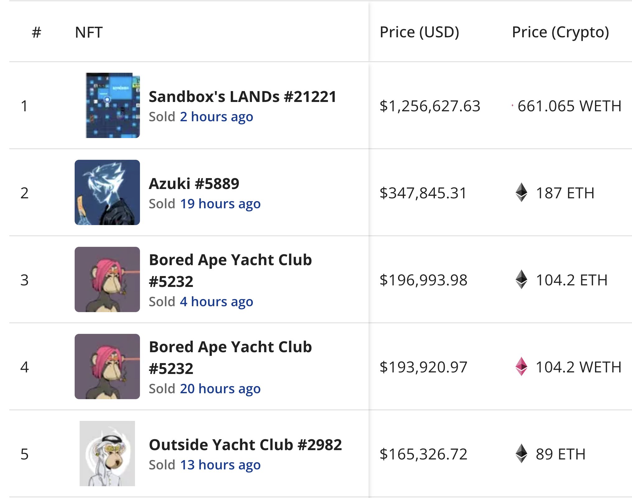 Today's top 5 biggest NFT sales đź’° https://t.co/UTv