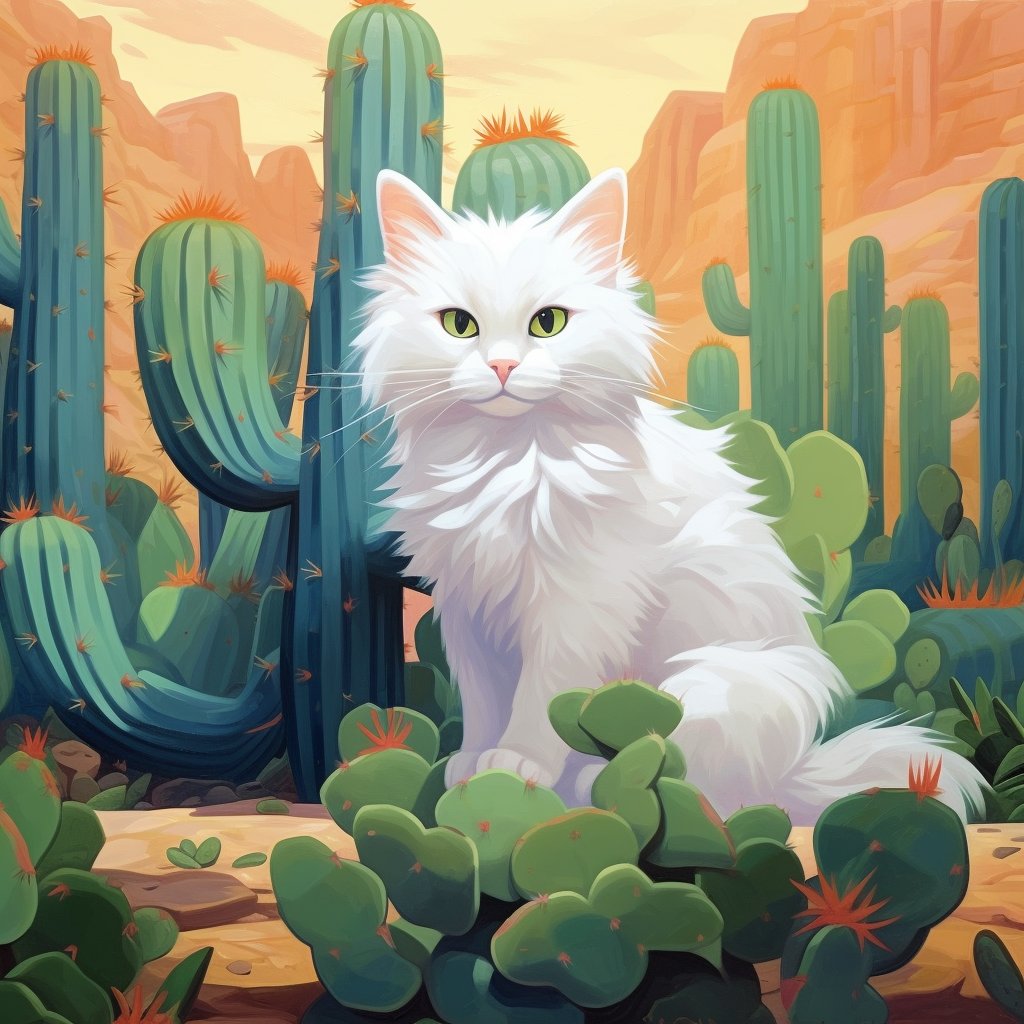 "Cat in cacti" In a world where cats meet cacti, there