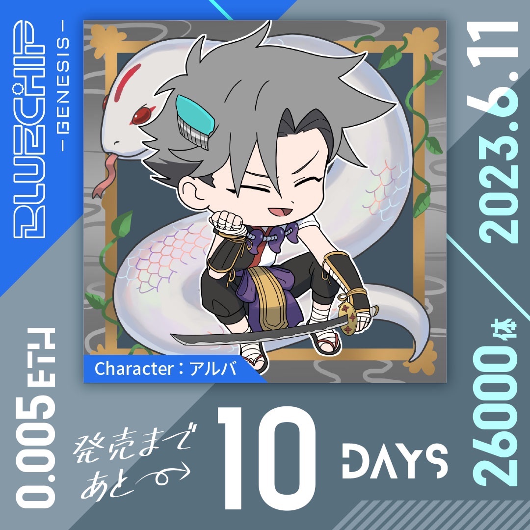 / BLUECHIP - GENESIS - ジェネラティブNFT🦊⚡️ 6月11日(日)リリース \ リリースまであと…10日🔥 今日はアルバ⚔️ 公式TikTokはこちら🎥⏬