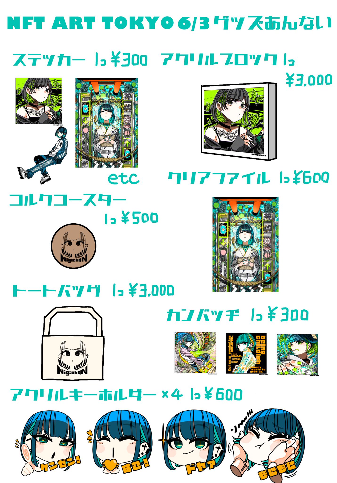 明日はいよいよNFT ART TOKYOですね! こちらお品書きになります‼️ 来場者限定でフリーミントのNFT配ろうと思いますのでよかったらぜひブースまでお越しください! おにぎりまんのブースはBAIAの1Fです #NAT3