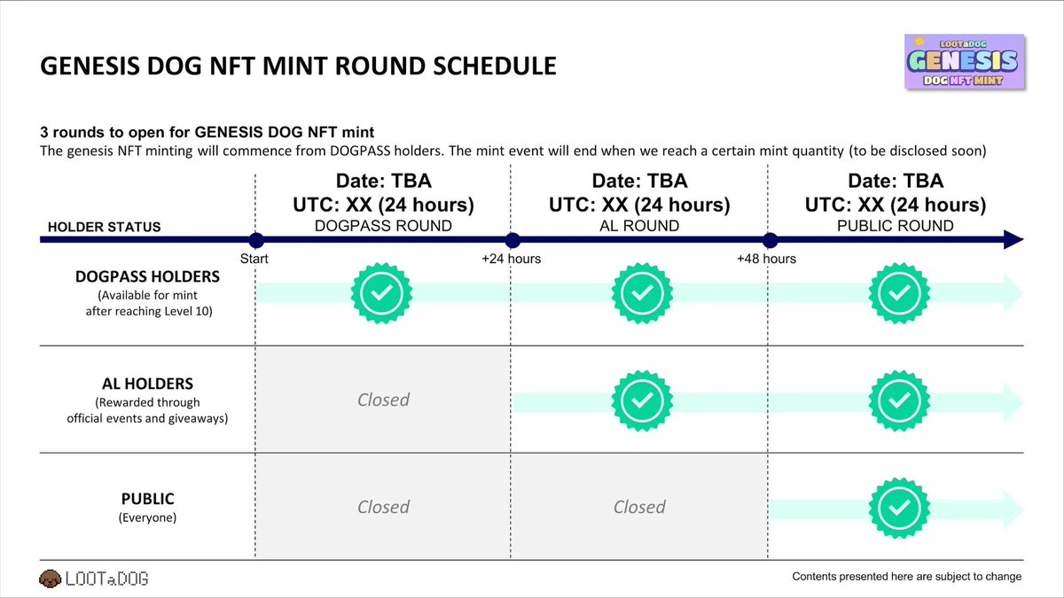 📢DOG NFT アナウンス📢 📅実施予定日:6月中旬~7月初旬頃を予定 🌟ジェネシスDOG NFTのミントは下記に分けて実施されます! 1