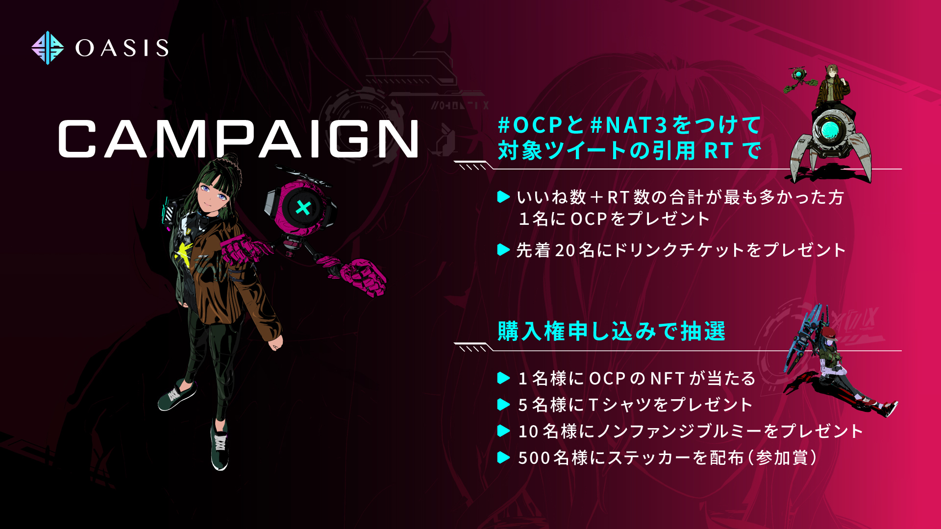 \明日はいよいよ #NAT3 OASIS出展/ 明日12:00、OASISがNFT ART TOKYO3に出展します!開催前に出展情報とキャンペーンのまとめを本ツイートのリプライでお届け🖊️ 来場者は