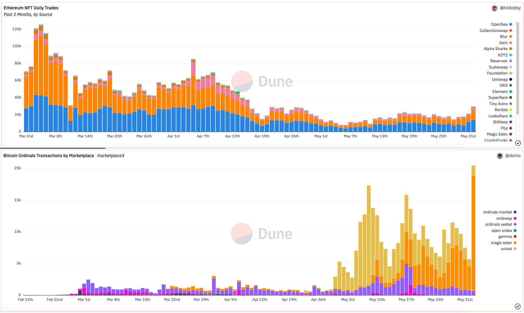 The number of NFT trades across all marketplaces between