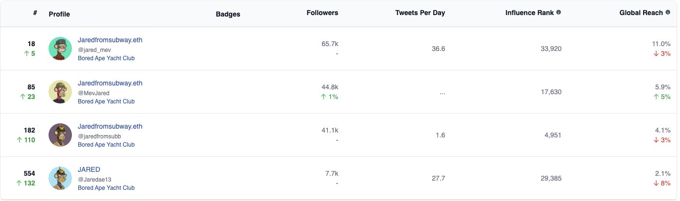 There are two Jareds in the top 100 on NFT Inspect