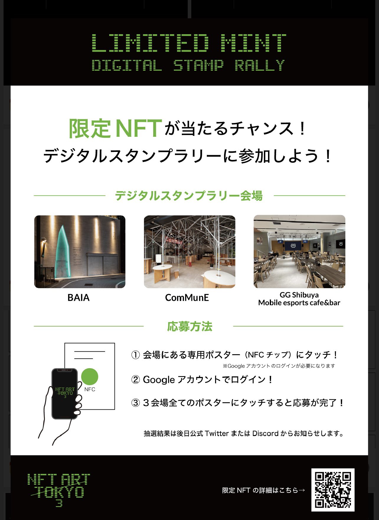 来場者さんは絶対やるべき! デジタルスタンプラリー💚 限定NFTが当たるチャンスを掴め✨ それぞれの会場をツリーで紹介☟ #NFT3