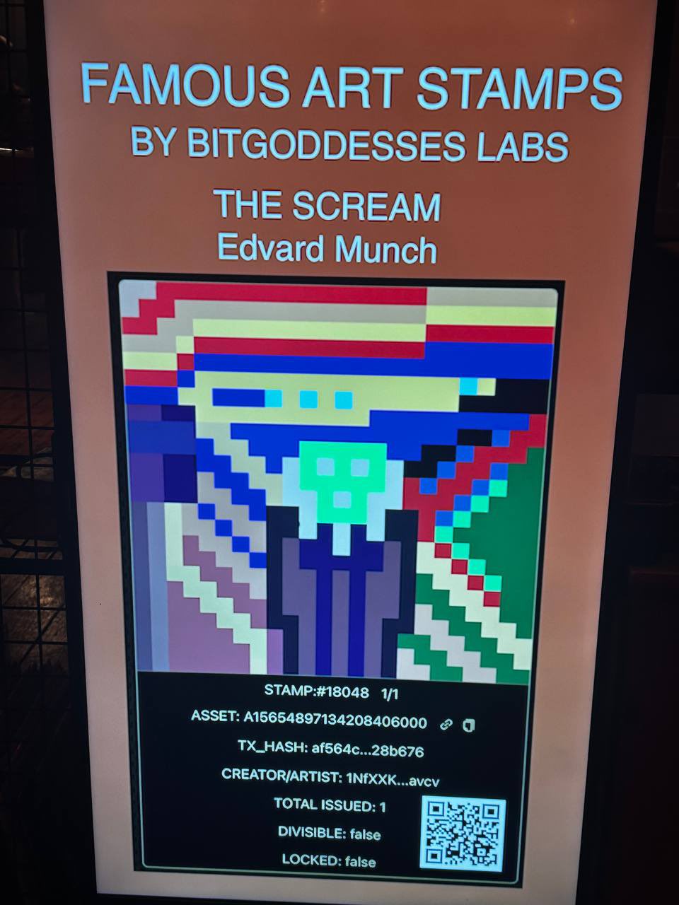 Bitcoin Stamps on display INC NFT Collective in Lisbon