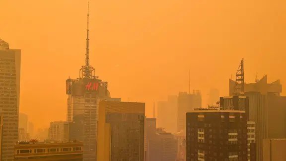 The orange sky in NYC are the result of the wildfires