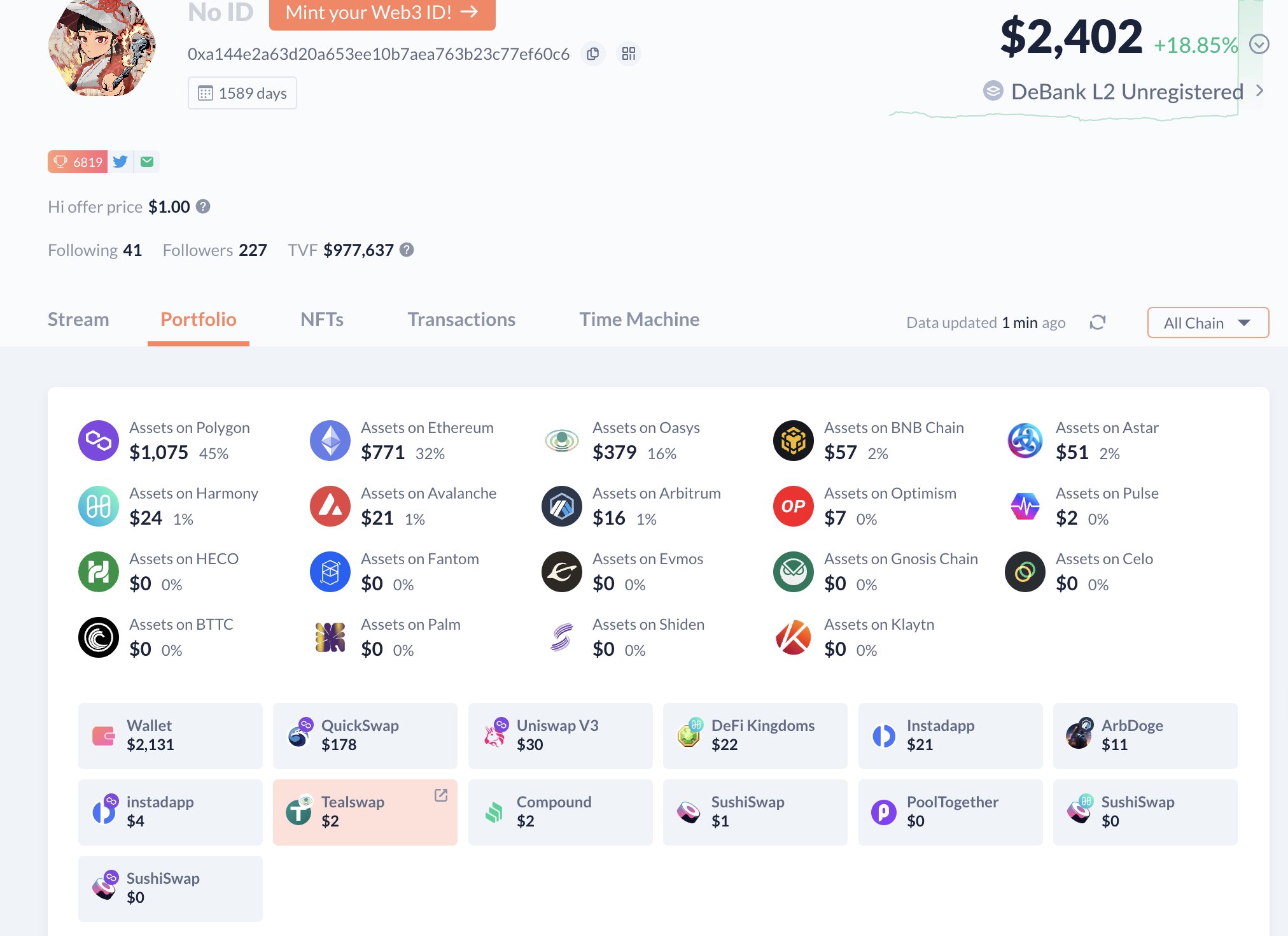 ついにDeBankがOASYS対応! Teal SwapのLPもカウントされてる。 みんなのVoteが実を結んだ! さらに、OASYXのNFT対応のvote立てておきました! OASYXをアイコンに設定できたりするように https://t