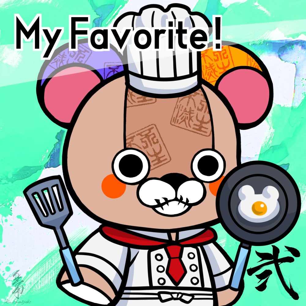 ✨書アートNFT新企画✨ くまちゃんの名前が「FANBEAR」に決まりました! そこで『私のお気に入りFANBEARは!?』 ぼくのお気に入りは【コックくまちゃん】です🍳 目玉焼きがくまちゃんなのもたまりません😁 あなたのお気に入りも教えてください😆 #書アートNFT #FANBEAR #アバターアート