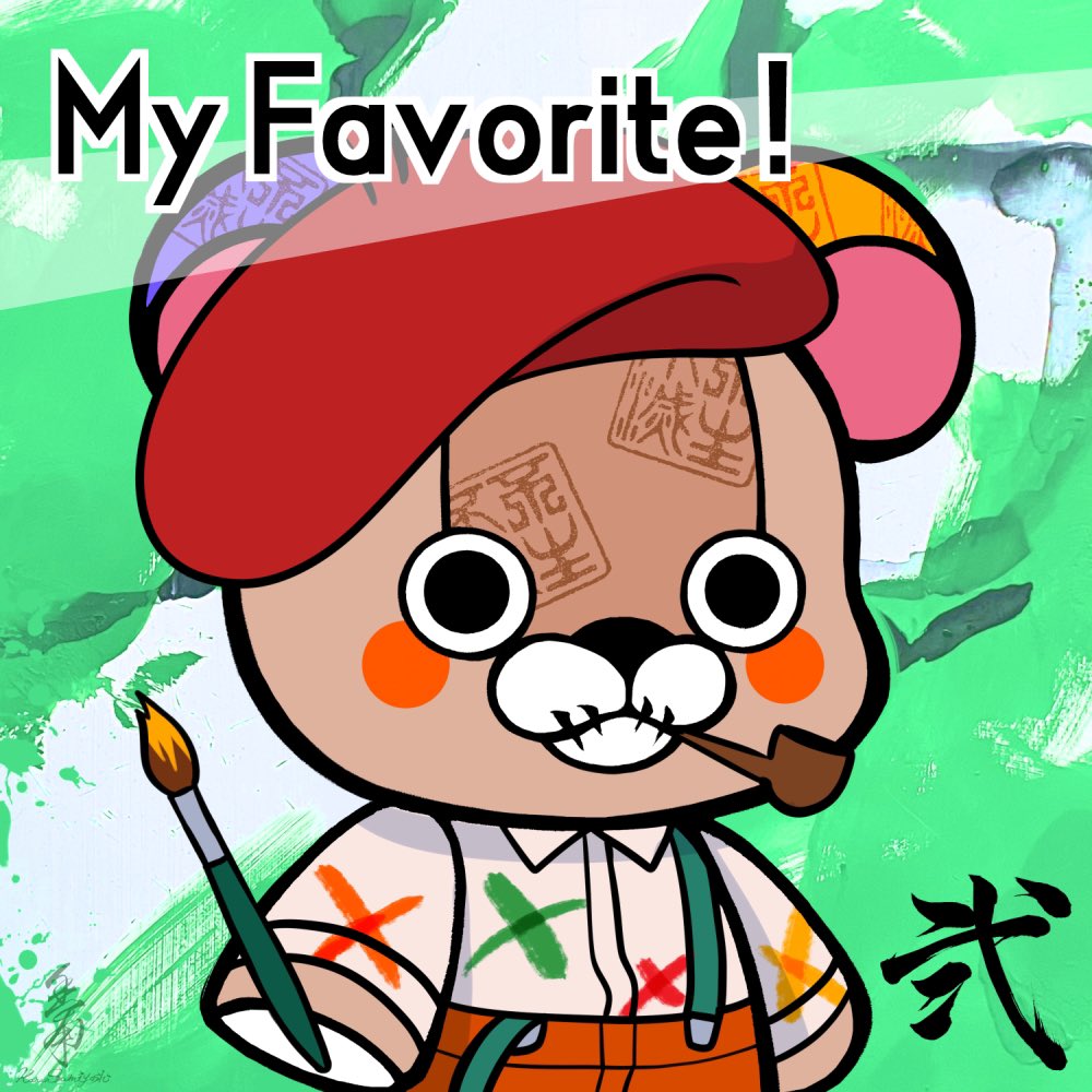 私のお気に入りくまちゃん3つ目は画家くま‼️ 書アート→アートと言えば。ですよね😁 これは外せません😎 #書アートNFT #熱狂 #FUNBEAR