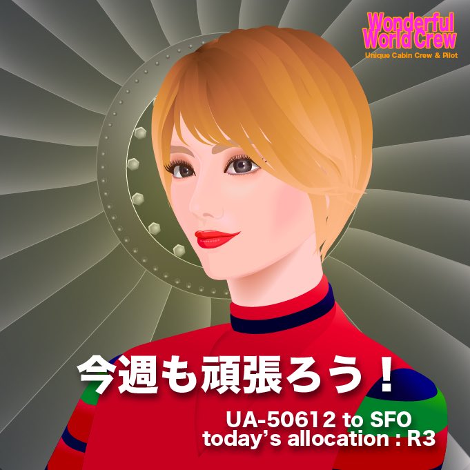 『Wonderful World Crew』 2ndシリーズ✈️❣️ 今日のCrewはレトロ制服シリーズ 1970年代のユナイテッド航空の 制服を着たCAのHazelです さぁ、今週も頑張りましょうね❣️😊 Open