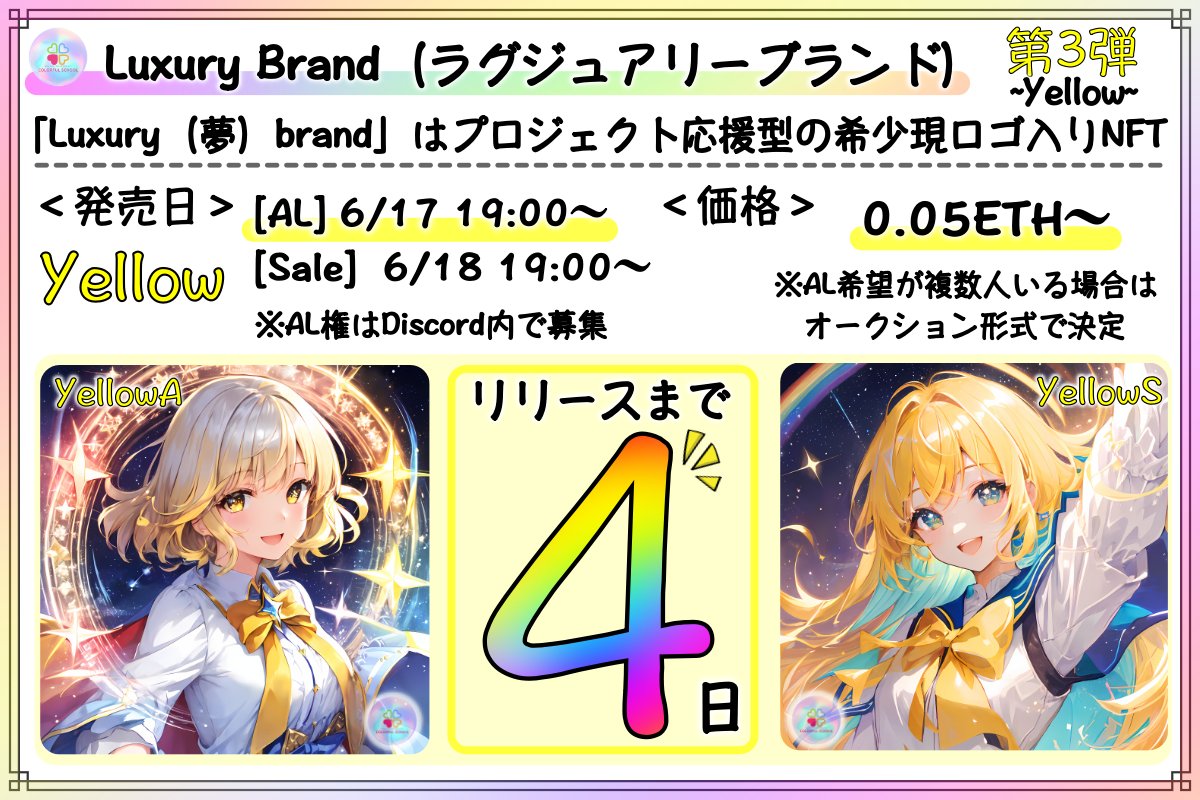 🌈Luxury brand 第3弾 -Yellow- イラスト公開!🌈 「Yellow」は映えますね‼️ 人気がどんどん高まってるbrand