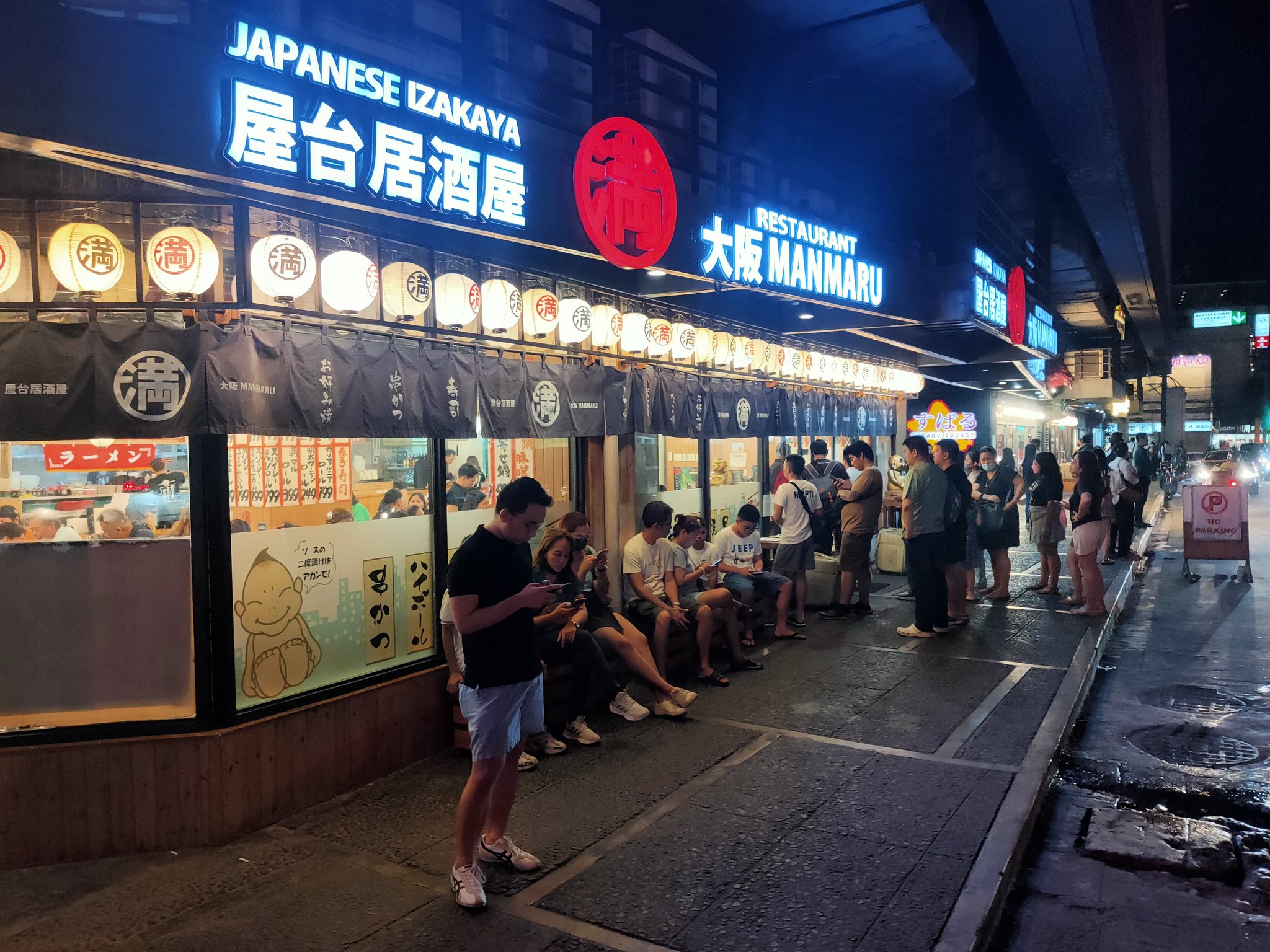 今フィリピンのマカティ市で大人気の日本の居酒屋、大阪MANMARU😆 中を覗いてみたらフィリピン人のお客さんでいっぱい😅 外にも待ってる人がいっぱい😂 確かにここは他のレストランと比べて美味しくて安くてボリュームもあるし😊 今日は僕も美味しいのをいただきます😋 合掌🙏 #GASSHO