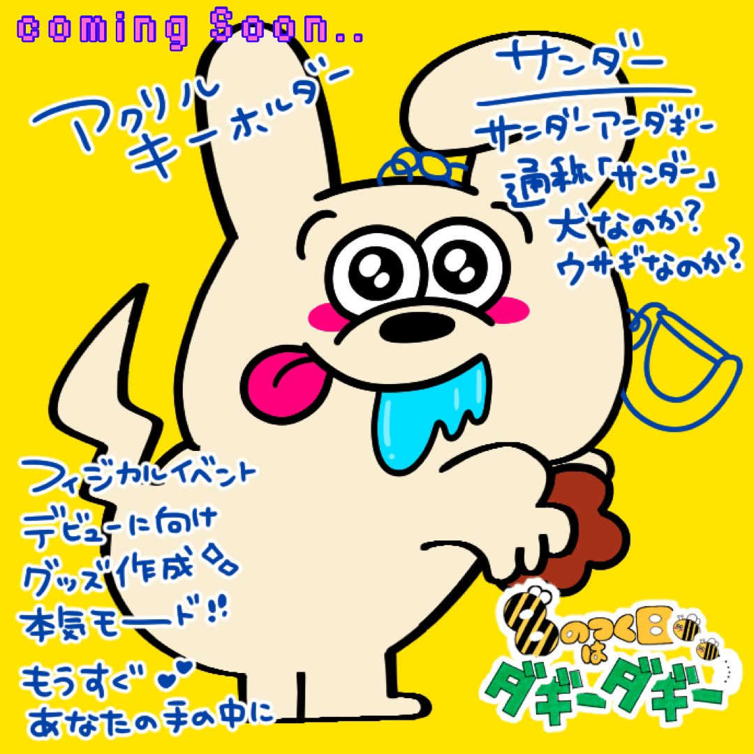 🌟アクリルキーホルダー🌟 【サンダー】 フルネームはサンダーアンダギー⚡️ 犬なのかうさぎなのか?分からない🤔 元気で食いしん坊🍚 イベント出展へ向けて グッズ作成中だぎ🐝🌈 ダギーダギーはNFTだけでなく たくさんの方に知って頂けるように フィジカルでの活動にも チカラを入れていきます🐝🌼