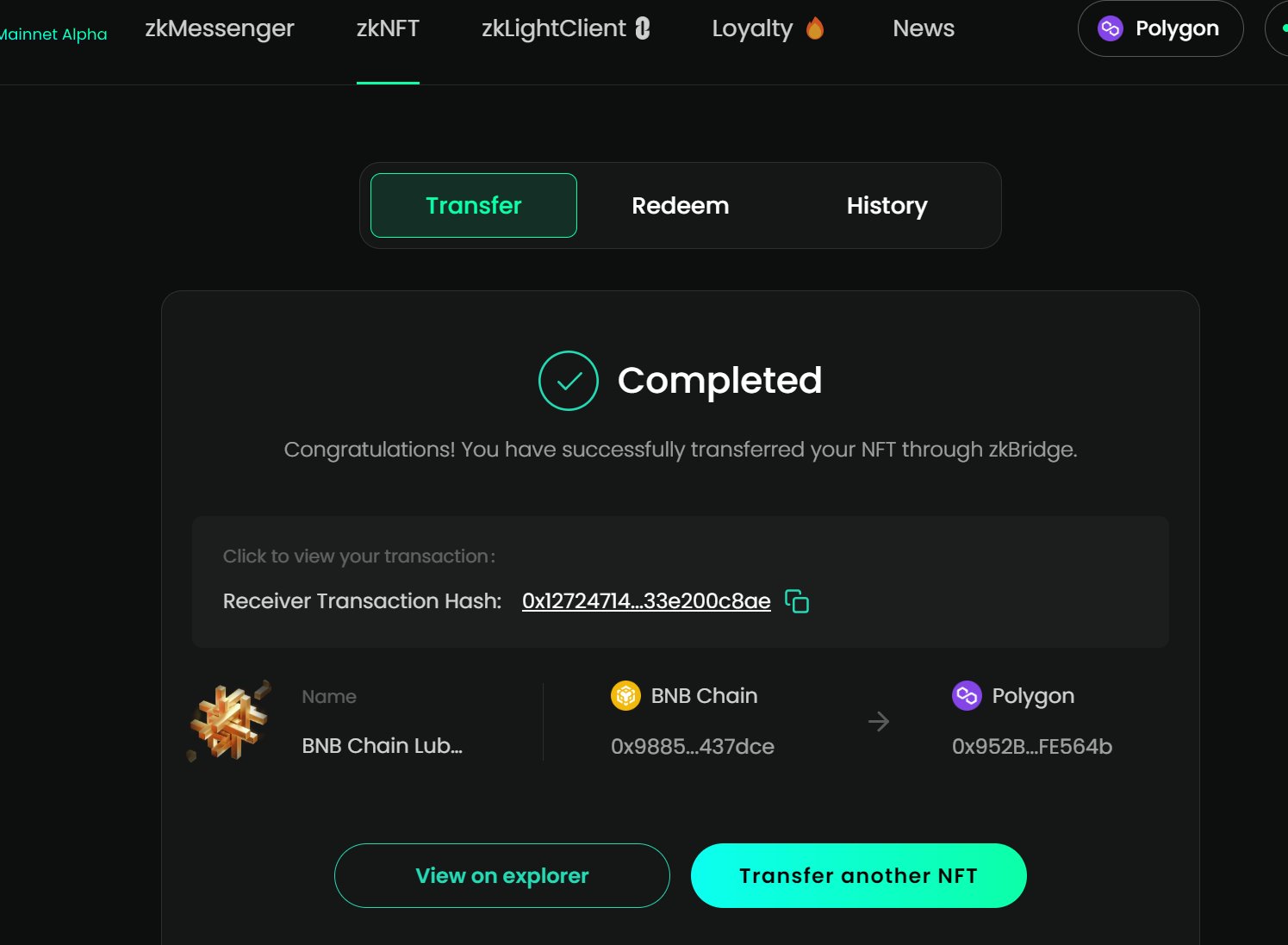 zkBridge Loyalty Program 新增2个小任务(mint和corss) BNB Chain