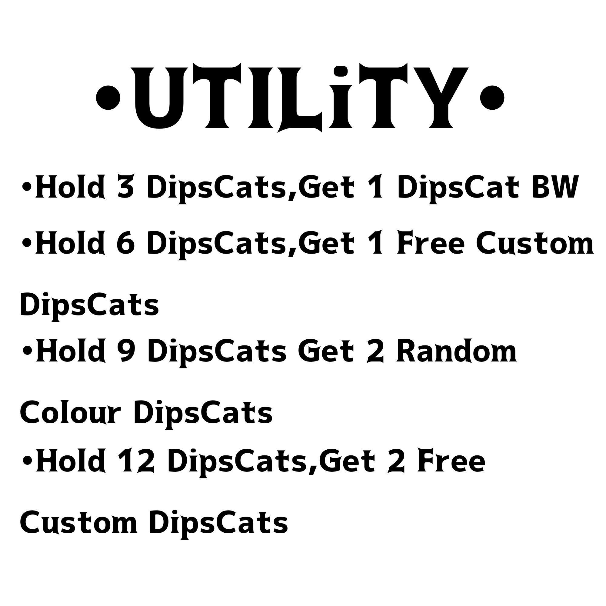 •UTILITY• •Hold 3 DipsCats,Get 1 DipsCats BW •Hold
