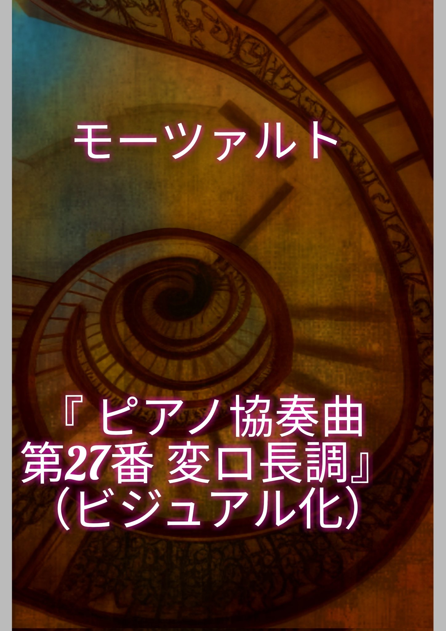 6月制作 AI作成&独自編集 モーツァルト、1791年の作品中の、ピアノ協奏曲とクラリネット協奏曲は、セットで作りました。 モーツァルトは、音楽が天から降ってくるようなイメージで、ピアノ協奏曲も縦長の構図。 『