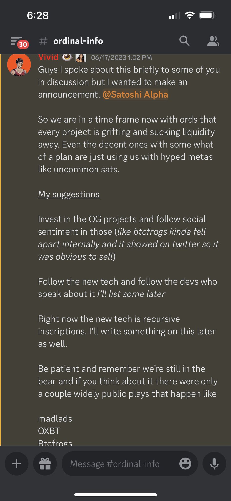 NFT alpha?? 👁️ 𝗕𝗶𝘁𝗰𝗼𝗶𝗻 Stop buying ordinals atm wait