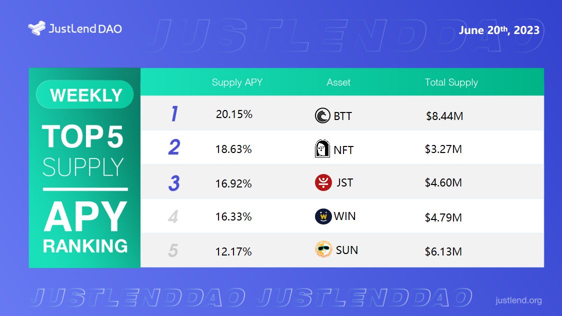 🔥Take a glance at the #JustLendDAO weekly top APY ranking 🥇