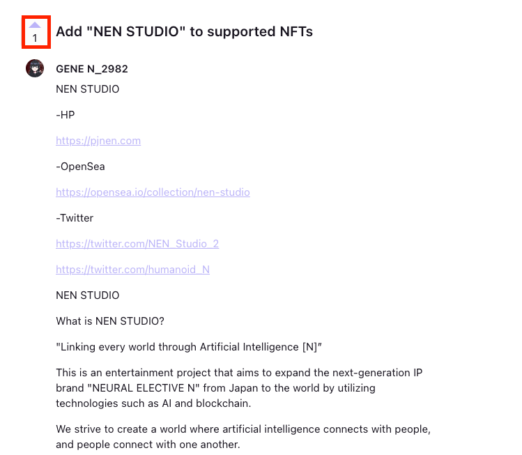 PhaverにNEN STUDIOをサポート対象のNFTとして追加するための提案を行いました🧬 詳しいことはさておき、NEN