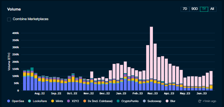 $BLUR has been clear leader in NFT trading since Nov-22 Opensea