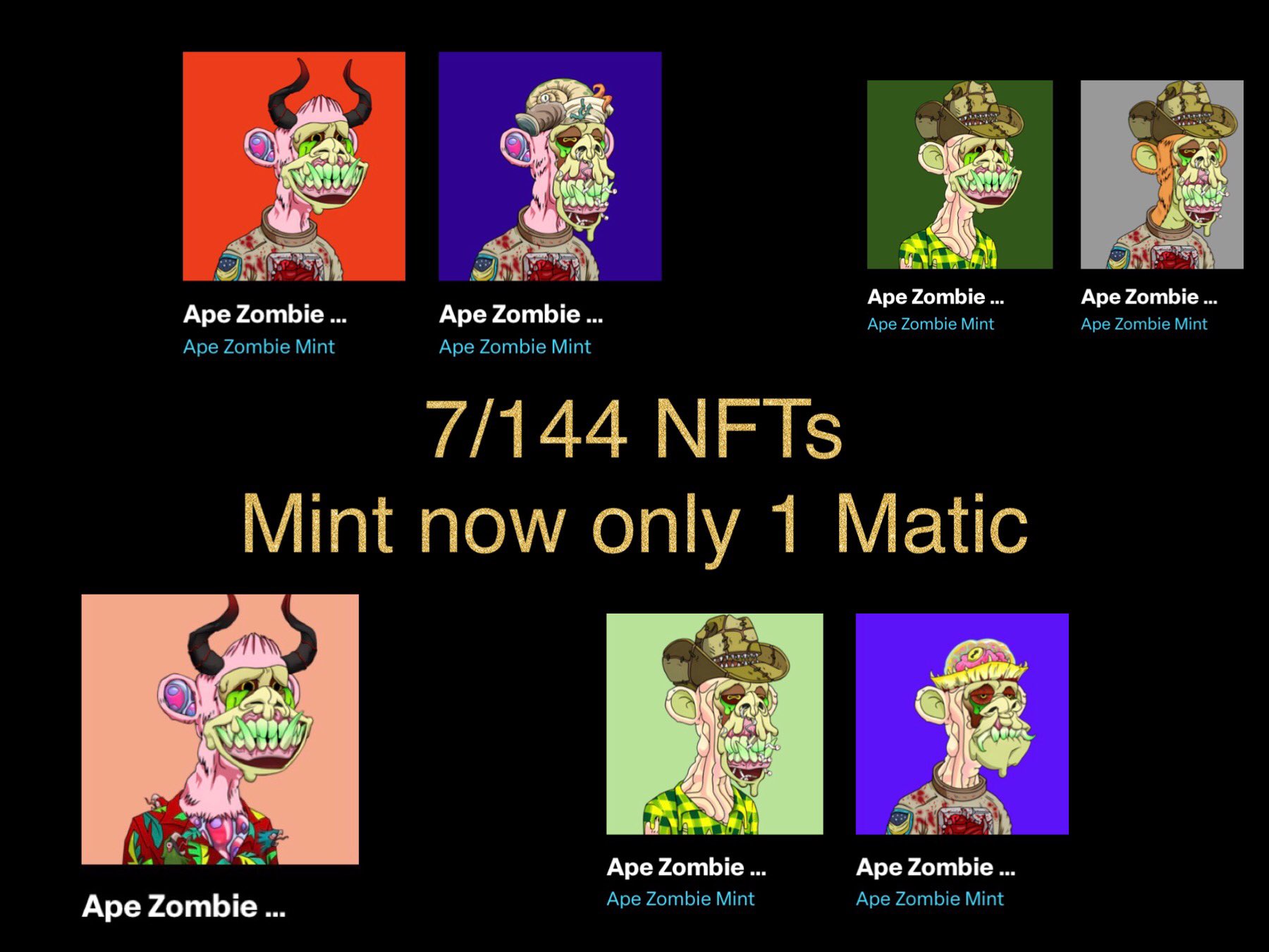 Mint your Ape Zombie only for 1 #MATIC and get a ticket
