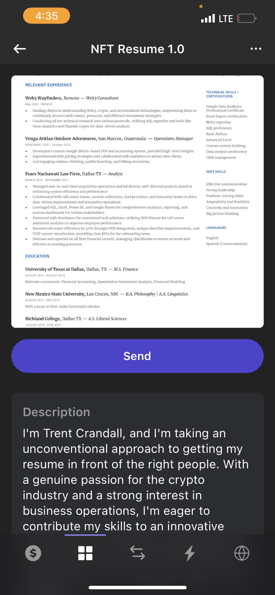 This resume was sent to my wallet as an nft. I dont