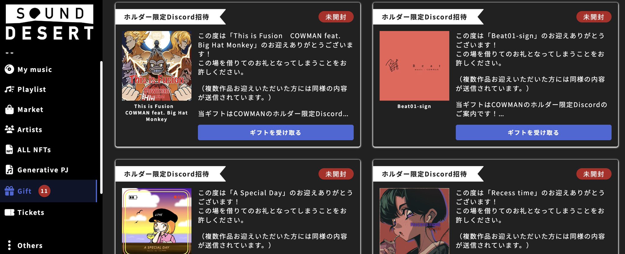 SoundDesertのギフト機能に通知が実装されました🔥🔥🔥 持っているNFTに特典が付くと通知がきます👀✨ SoundDesertを利用しているアーティストの方は是非利用してみて下さい!