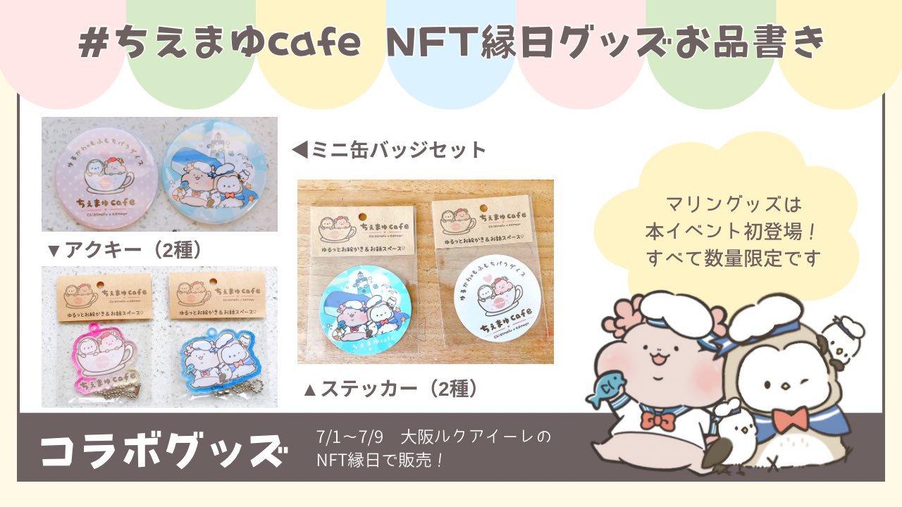 #NFT縁日 で販売するグッズのお品書きを作りました❣️#ちえまゆcafe ブースではコラボグッズやクリエイターの個人アイテムが並びます🥰✨ 合計2