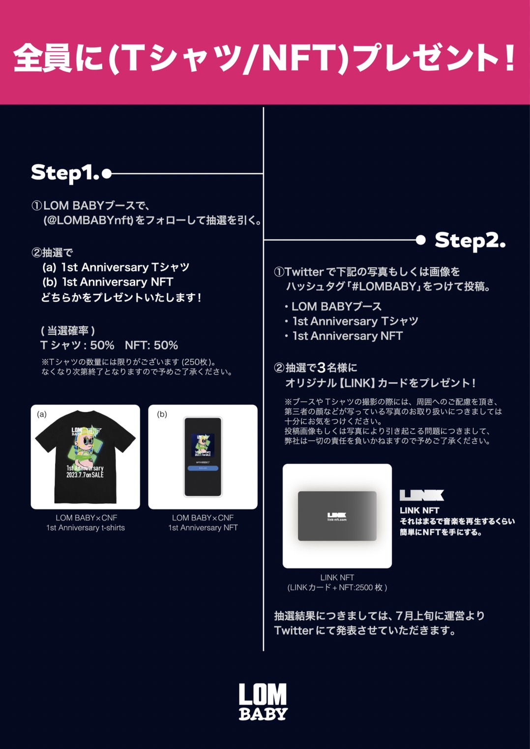 🚨Nコレにご来場される皆様へ🚨 【大切なお知らせ】 LOM BABYブースでは下記のような特典をご用意しております。 [特典1] 全員に"Tシャツ"