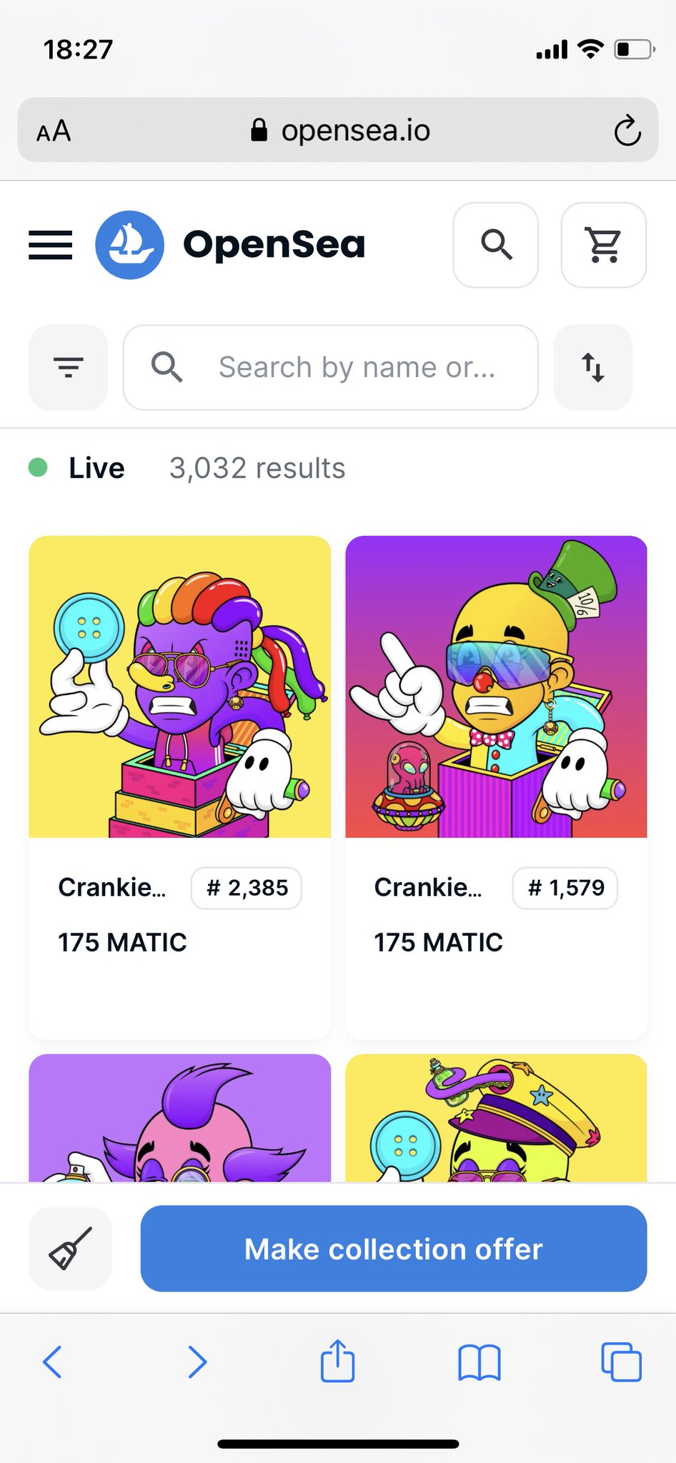 Floor 🔥 on Crankies is 175 MATIC 😱 nearly 6x the mint