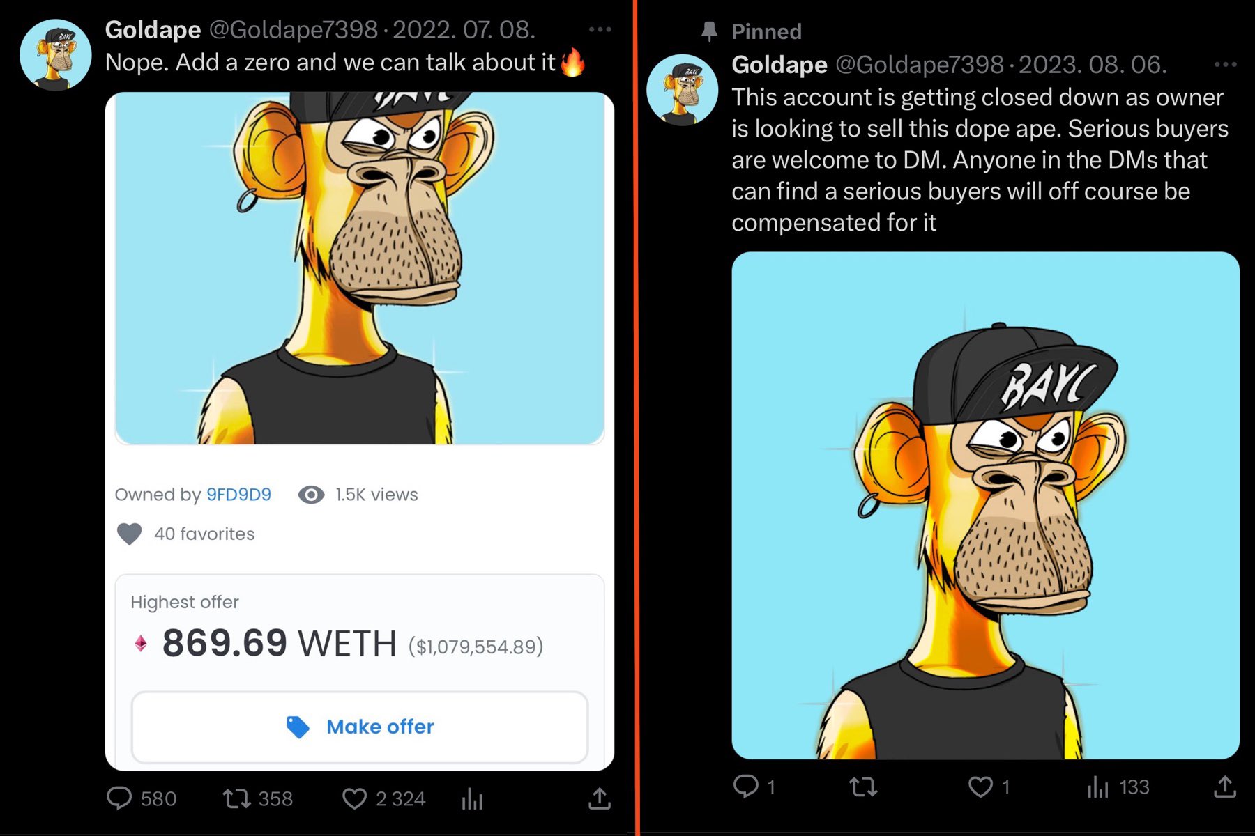 From declining a $1M offer to hawking the NFT. Omoooo I