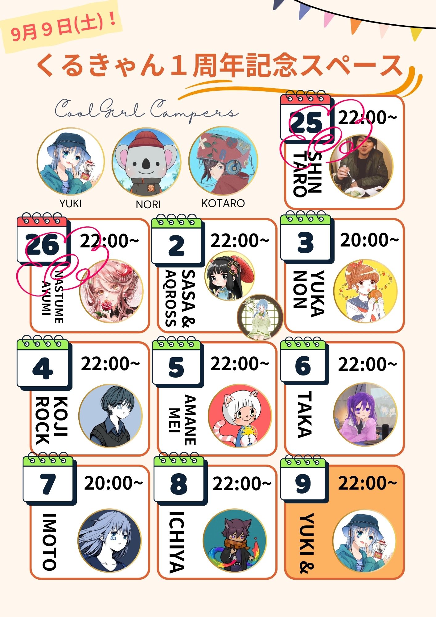 皆さまGMです😆 9月9日(土)は、くるきゃん発売1周年! 9日に向けて、1周年記念NFTと連続スペース対談企画を実施中🏕️✨ これまで、お世話になった方と対談できることが嬉しいです。くるきゃんの思い出なんてお話ししたい!貴重な話もできるかも。お楽しみに! リマインダーはリプ欄です👇