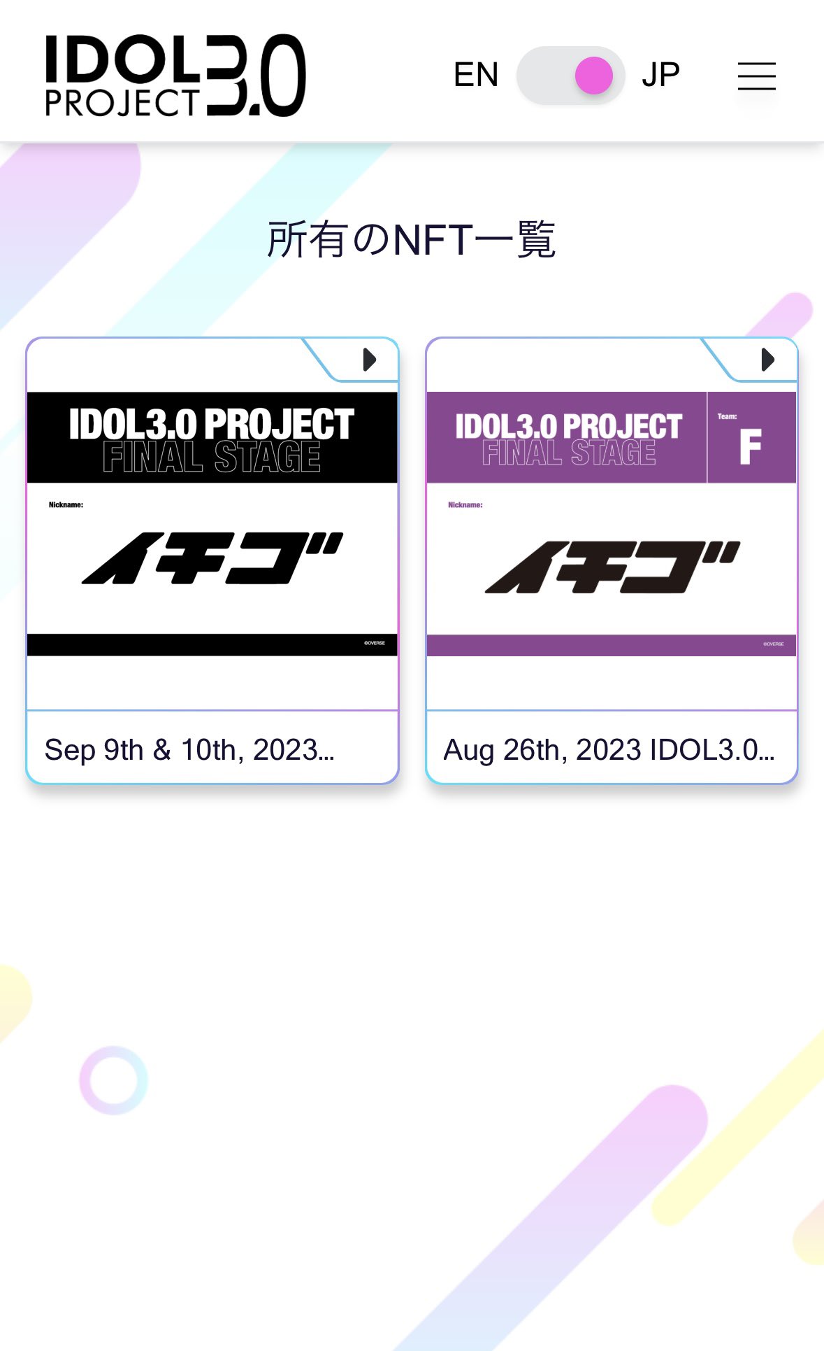 あぶね あやうくゼッケンNFT受け取り忘れるところだった 何部行っても貰えるのは1つっぽい? Fチーム全員分貰おうと思ったのに #IDOL3
