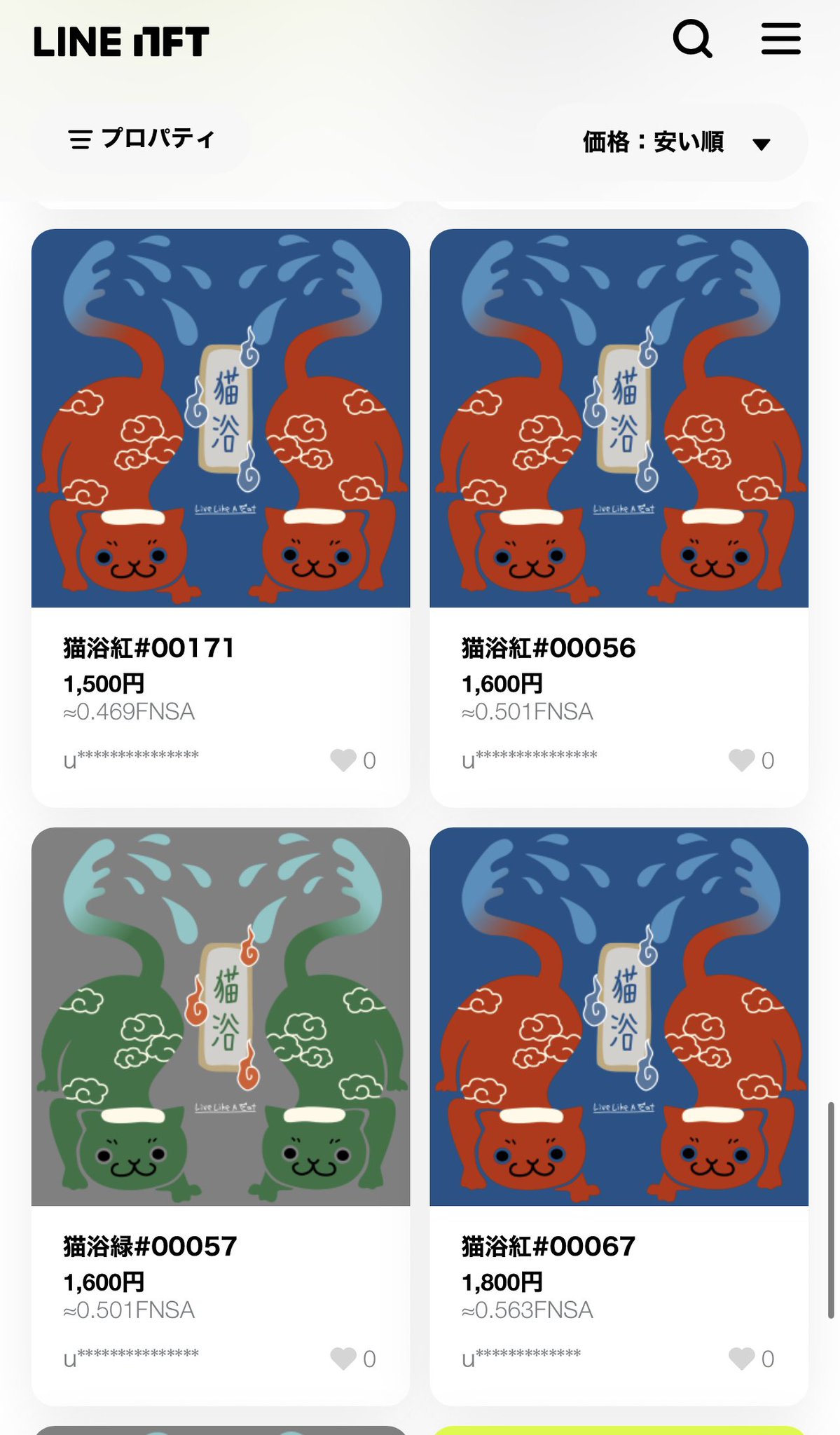 別府お湯かけフェス #bosf23 で配った #LLAC LINE NFT、さっそく1,500円でマーケットに並んでます。1日で300人以上がゲット。そのうち新規受け取り数は280人でした。並んでる