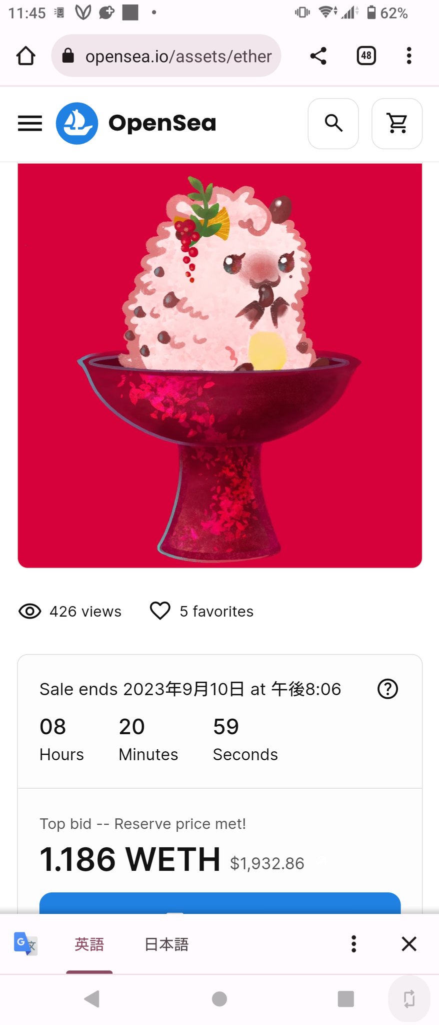 HamCup#028のオークションは11時43分時点で1.168WETHとは恐れ入りました これは前回を超える可能性が高まりましたね それにしてもNFT業界が冷え込んでいる今 ここまで盛り上がっているHamCupは熱すぎですね #HamCup