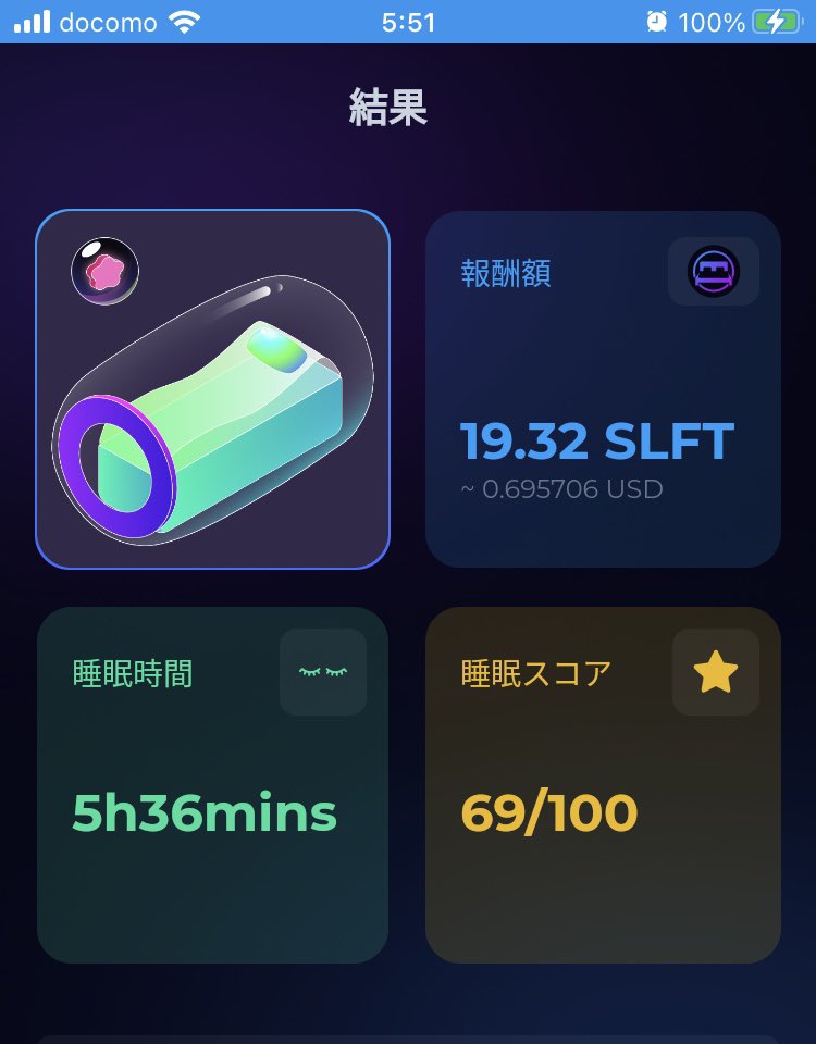 #SleeFi βテスト 7日目 19.32SLFT 修復10 (8.308) 獲得 11.012